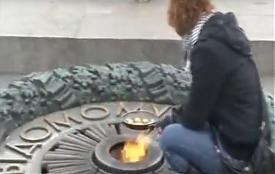 В 2011 году киевлянка Синькова с такими же отмороженными друзьями решила устроить "перформанс" или "акт протеста", в общем – кощунство на могиле Неизвестного солдата. Они принесли сковородки и на Вечном огне принялись жарить яичницу с сосисками. Жарили до тех пор, пока их не арестовали. Подобные акции проходили по всей Украине, как мы помним события тех лет – нация была готова на все ради красивых трусов, а в мемориале никаких высших духовных смыслов киевлянка не видела, она отвергала любые смыслы, кроме материальных – по ее логике, имеет значение только природный газ, поэтому как первобытные люди, увидев огонь, киевляне собрались у костра пожрать, как будто находятся у себя в пещере.