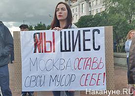 Несмотря на дождь, никто не уходит и не прячет листовки. К толпе спешно направляется девушка и разворачивает плакат с надписью "Москве не НАмуСоРить на Шиес!" – это 19-летняя Маргарита, она студентка и ее тревожит подобное отношение к окружающей среде и людям.