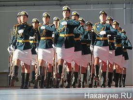 Как рассказал военный комендант Екатеринбурга, подполковник Михаил Вилль, представительниц прекрасного пола, удостоенных чести представлять женское лицо армии, собирали со всего ЦВО. Командиры военных подразделений сухопутных войск, летчиков, спецназа, ВРХБ, бригад радиоэлектронной борьбы отобрали своих лучших сотрудниц. Из 230 заявок осталось 25, и 20 лучших девушек встанут в строй взвода почетного караула, остальные же пройдут в составе ежегодной сводной "коробки" женщин Центрального военного округа.