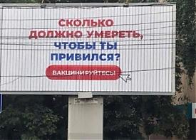 "Сколько должно умереть, чтобы ты привился?", "Болеть больно, умирать страшно", "Вакцинация спасает жизни. Не беречь себя и близких – это безумие", – такая наглядная агитация появляется в российских городах.
