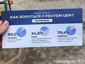 В Екатеринбурге раздают листовки с "результатами соцопросов" о том, как губернатор Евгений Куйвашев цены в магазинах снижал.