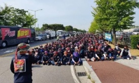 Корейские водители сыграли в забастовочного "кальмара"