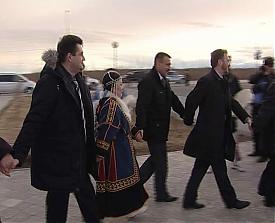 Гендиректор компании "Ямалтрансстрой" вручил Николаю Винниченко билет по маршруту полуостров Ямал - станция Обская на открытии моста через реку Юрибей. Полпреду показали, откуда и куда будет идти железнодорожная ветка, связывающая Урал промышленный с Уралом Полярным. И прокатили на поезде. Позже, в чуме, Винниченко спросит у коренных жителей Ямала, а смогут ли соседствовать такие два "вида транспорта", как железная дорога и олени. Аборигены убедили - жд им не помешает.