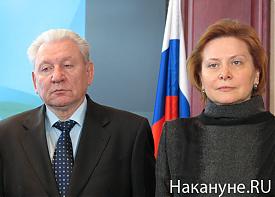 После заседания состоялся краткий брифинг для журналистов. К прессе вышли председатель думы Югры Василий Сондыков, губернатор ХМАО Александр Филипенко, будущая глава региона Наталья Комарова и полпред Президента по УрФО Николай Винниченко.