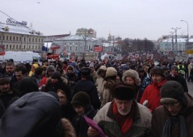 Что касается численности акции, то в столице на протесты выходит и 70 тысяч, и 100 тысяч, и власти готовы к этому, и 30 тысяч для них не в новинку. Самое главное, что не прозвучало никаких новых лозунгов, а лозунги, которые прозвучали, были сформированы тем дискурсом, который формирует власть. Организаторы и участники протеста от выступления к выступлению не поднимают те лозунги, которые подняли бы провинцию, не поднимают проблемы, которые интересуют людей, о том, как власть залезает в карманы обычных людей например. В декабре было принято много законов, которые при грамотном толковании могли бы поднять провинцию. Однако из всех этих законов для лозунгов оппозиция выбрала самые сервильные и неопасные, как, например, закон Димы Яковлева. Власть же, напротив, пыталась навязать им эти лозунги, чтобы отвлечь внимание. Либеральная оппозиция предпочла играть в игру, которую предложила власть.