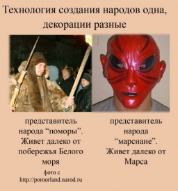 На Русском Севере активно идут процессы распада русского народа. Кучка "исследователей шаманизма", "врачей-общественников", "казацких поморов", журналистов и этнографов в штатском, псевдо-ученых, бизнесменов лихих 90-х, либероидов позаимствовало светлое имя "помор" у жителей деревень на берегу Белого моря. Задайте либероидной компании вопрос: ребята, а какие вы поморы? Вы же нежные горожане, промышляющие рыбой в супермаркете! Они ответят грязной руганью: "За что ненавидишь поморов, ставленник ТНК?" То есть они первые нашли историческую страничку в нашей истории, которую можно приватизировать и считают теперь ее своей собственностью. В нашем случае они приватизировали историю древних новгородцев, пришедших на Север. И переписали эту историю на правах собственника. Выдумали новый "коренной народ".