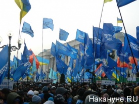 В то время, пока молодежь устраивает на Майдане посиделки и пляски, в другой части Киева, в Мариинском парке, отгороженные от "евромайданников" зданием Верховной Рады собрались сторонники Партии регионов. Свой протест регионы начали только 3 декабря, решив устроить бессрочный митинг в ответ на митинг "майданников", но уже сегодня в нем участвуют порядка 10 тысяч человек.