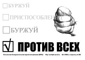 Сергей Черняховский: Конечно же. Эта графа позволяет ни за что не отвечать. Вот если бы она стимулировала создавать свои партии, то это было бы повышение ответственности. А графа "против всех" позволяет сказать: "Я вам плюну всем в лицо и пойду есть борщ".