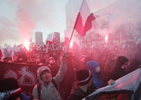 Российские журналисты рассказывают историю, как на международной трассе в Польше 150 украинцев – последователей Майдана – перекрыли движение пылающими шинами. Образовалась гигантская пробка, в которой намертво застряла сотня грузовиков, легковые автомобили и общественный транспорт. Среди них – и наполненный пассажирами рейсовый автобус, следовавший по маршруту "Краков-Львов". Водитель автобуса в сопровождении нескольких пассажиров-поляков подошел к манифестантам и попросил их пропустить автобус. В ответ несколько молодых людей в масках ворвались в автобус и учинили словесный террор пассажирам. В частности, они предложили жителям Кракова альтернативу. Дескать, каждый поляк, если он не хочет оказаться в пылающем костре, должен громко сказать лозунг: "Слава Украине, героям слава!".