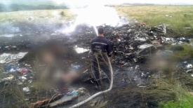 Это была работа украинского правительства. Они были поблизости. (Не существует ракет, выпущенных с расстояния более 30 000 футов до земли, которые бы попадали прямо в кабину пилота, а не просто в большой корпус самолета). Они - правительство, которое назначил Обама в феврале, и это они теперь проводят этнические чистки против жителей юго-востока Украины, т.е. мест, где живут избиратели Януковича (если они все еще могут жить). Сравните эти фото со следующими, которые я беру с пропагандистского сайта американского режима, которые вместо того, чтобы поддержать линию администрации, на самом деле поддерживает версию Хайсенко:
