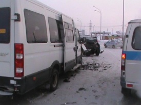 За рулем "Тойоты" находился 36-летний бизнесмен, водитель со стажем около семи лет. Как предварительно установили полицейские, он своевременно не снизил скорость, в результате чего не справился с управлением, и автомобиль вынесло на встречную полосу. "Лэнд Крузер" по касательной зацепил полуприцеп "КамАЗа" и въехал в пассажирский микроавтобус "Ивеко", в котором находились шесть человек.