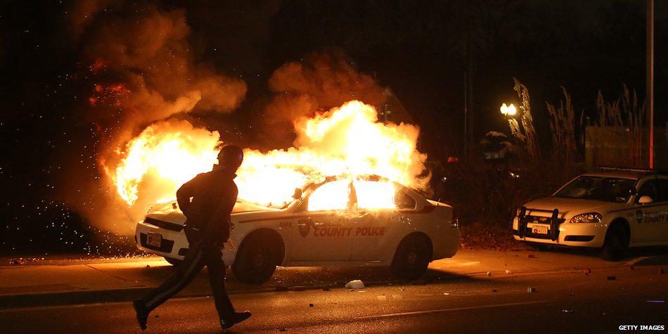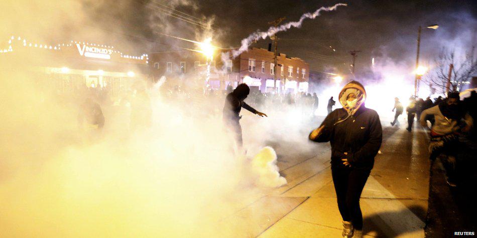 Местные жители поджигают полицейские машины и магазины, сообщается о фактах мародерства и применения слезоточивого газа.