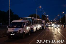 В Омске произошло столкновение двух маршрутных такси и пассажирского автобуса.