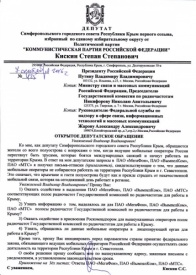 Депутат симферопольского горсовета республики Крым от КПРФ Степан Кискин написал очередное открытое обращение к Владимиру Путину. Об этом Накануне.RU рассказали в пресс-службе парламентария.