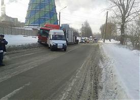 ДТП произошло сегодня, 14 января, в Тракторозаводском районе на улице Линейная. Водитель грузового автомобиля "СКАНИЯ" с полуприцепом, совершил столкновение с движущийся впереди маршруткой № 34.
