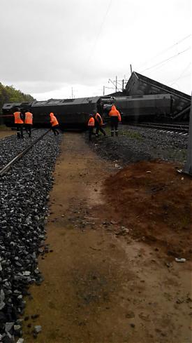 По предварительным данным, в результате схода вагонов никто не пострадал, однако нарушены габариты по двум путям и повреждена контактная сеть.