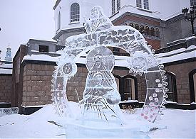 Приз благотворителей получили Матвей и Мария Ваваевы, которые представляли Нижний Тагил, создавшие ледовую скульптуру "И, обходя моря и земли, глаголом жги сердца людей".