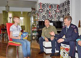 "Съемочная группа пресс-службы ГУ МВД России по Свердловской области совместно с начальником отдела полиции по городу Березовскому подполковником Сергеем Матвиенко, членом Общественного совета при ОМВД Андреем Теребениным и председателем Совета ветеранов Алексеем Глушковым решили навестить юное дарование по месту жительства, чтобы поблагодарить за весомый вклад в дело профилактики преступности. В торжественной обстановке парню вручили новый конструктор, дабы интерес к творчеству и в дальнейшем не пропал. Пусть творит во благо своих земляков", - отметил полковник Горелых.