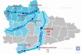 На 1 см за сутки прибавила и река Исеть у Катайска и Шадринска, остальные реки по-прежнему идут на спад.