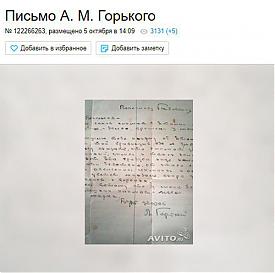 В Екатеринбурге продают на Авито редкое письмо Максима Горького за 100 тысяч