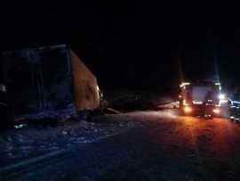 В ГУ МЧС РФ по Ленинградской области Накануне.RU сообщили, что авария произошла около шести утра в Тихвинском районе региона - на 443 км трассы Вологда – Новая Ладога.