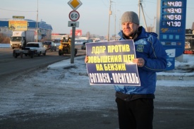 В Кургане активисты ЛДПР провели серию одиночных пикетов - "соколы Жириновского" выступили против повышения цен на бензин.