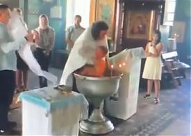 На кадрах видеозаписи видно, как священник нервно хватает ребенка и силой окунает в купель, ребенок плачет и вырывается, но священник совершенно невозмутим. На настойчивые просьбы матери прекратить священник продолжает "таинство крещения".