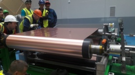 В ходе пуско-наладочных работ в новом цехе электролиза медной фольги КМЭЗ произвели 8 метров фольги толщиной 35 микрон. Технологическая линия позволяет выпускать фольгу толщиной от 9 до 105 микрон по международным стандартам IPC-4562.