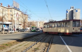 В Челябинске в районе остановки "Теплотехнический институт" сошел с рельсов трамвай № 18. Об инциденте в соцсетях сообщили очевидцы, передает корреспондент Накануне.RU.