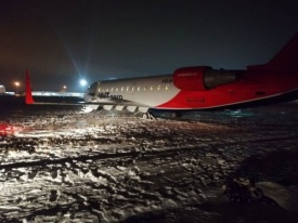 Воздушное судно "Bombardier" видимых повреждений не получило. Самолет отбуксировали на взлетно-посадочную полосу.