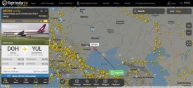 "Странная ситуация в небе над Украиной: прямо сейчас через бесполётную зону прорывается большой пассажирский самолёт «Катарских авиалиний», направляющийся из Дохи в Монреаль", - пишет Telegram-канал Baza.