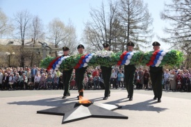 Торжественные мероприятия сегодня начались общегородской акцией памяти "Слава тебе, солдат!". Участники возложили цветы к мартирологам, на которых выгравированы 2305 фамилий погибших верхнепышминцев – участников Великой Отечественной войны, а также к памятнику советскому Солдату–Освободителю.