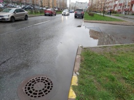 Житель МО № 65 в Приморском районе Санкт-Петербурга пожаловался на затопленный участок дороги после вчерашнего дождя. При этом неподалеку от лужи находится ливневка, однако вода в нее не уходит из-за непродуманного расположения объекта.