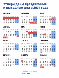 Правительство России утвердило производственный календарь на 2024 г. Премьер-министр Михаил Мишустин подписал постановление о переносе выходных дней.