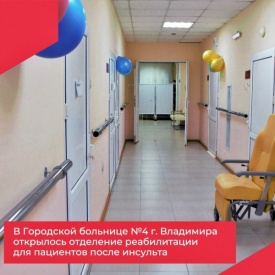 Отделение реабилитации во Владимирской Городской больнице №4 уже приняло первых пять пациентов после инсульта