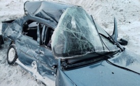 Автомобиль "Рено-Логан" выехал на встречную полосу и столкнулся с автобусом "Хигер". В аварии погиб пенсионер - водитель легковушки, а также двое пассажиров.