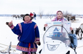 Как сообщили Накануне.RU организаторы, мероприятие прошло при поддержке предприятий "Газпром нефти" в рамках программы социальных инвестиций "Родные города". "Газпромнефть-Заполярье" и "Газпромнефть-Ямал" вручили ценные призы победителям спортивных и творческих соревнований. Например, награду получила Мальвина Лапсуй из Тазовского района – она заняла первое место в гонках на упряжках среди женщин и получила снегоход.