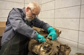 Ведется комплексная реставрация фрагментов шкуры и мягких тканей мамонта. На сегодняшний день заведующий мастерской реставрации естественно-исторических предметов Юрий Стариков и художник-реставратор Татьяна Дьяконова выполнили препаровку и консервацию шкуры мамонта.