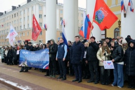 Отметить годовщину «Крымской весны» на Театральной площади в Калуге сегодня, 18 марта, собрались студенты калужских ВУЗов, училищ и колледжей, члены и сторонники партии «Единая Россия», представители «Молодой гвардии» и волонтерских организаций.