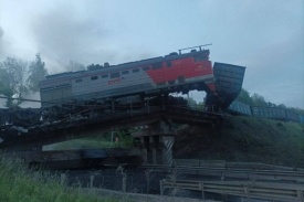 В Железногорском районе Курской области 1 июня 2025 года около 03.00 также произошел подрыв железнодорожного моста, от чего проходящий железнодорожный состав упал на автомобильную дорогу. В результате произошедшего пострадали машинист и два его помощника.