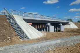 Протяженность конструкции составляет чуть более 41 метра. Специалисты заменили выравнивающий слой и гидроизоляцию мостового полотна, барьерное и перильное ограждения, деформационные швы. Также работы включали ремонт пролетных строений, устройство асфальтобетонного покрытия, лестничных сходов, системы водоотвода и укрепление на откосах насыпи.