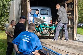 В груз общим весом 7 тонн вошли специальные автомобильные масла, медикаменты, одежда, маскировочные сети, автомобиль УАЗ и мотоцикл "Урал", а также строительный материал — брус, доски, двери, окна — все, что нужно для возведения бани.