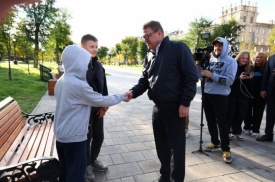 Затем Алексей Текслер совершил прогулку по скверу Металлургов, который в минувшем году модернизировали в рамках федерального проекта «Формирование комфортной городской среды» нацпроекта «Инфраструктура для жизни».