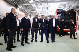 Полномочный представитель Президента России в УрФО Артём Жога, губернатор Челябинской области Алексей Текслер, генеральный директор Группы Синара Виктор Леш и глава города Челябинска Алексей Лошкин открыли модернизированное троллейбусное депо №2.