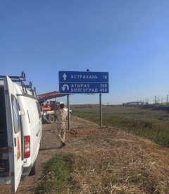 Федеральная трасса «Волгоград-Астрахань» становится безопасней - специалисты устанавливают новые дорожные знаки и барьерное ограждение