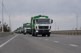 Астраханский филиал «ЭкоЦентр» приобрел очередную партию специальной техники: 12 мусоровозов и 2 ломовоза. Транспорт осмотрел губернатор Астраханской области Игорь Бабушкин.