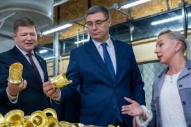 Губернатор Владимирской области Александр Авдеев в ходе рабочей поездки в Вязниковский район посетил предприятие «Мстёрский ювелир». Глава региона и исполнительный директор компании Дмитрий Мазаников обсудили планы развития предприятия, которое стало частью крупной ювелирной группы наряду с производствами «Кольчугинский мельхиор» и «Интерсильверлайн» и вошло в федеральный реестр предприятий народных художественных промыслов.