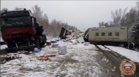 По сообщению ГАИ Иркутской области, на 1581 километре федеральной трассы произошло столкновение четырех большегрузов. В результате аварии два водителя погибли, два получили различные травмы.
