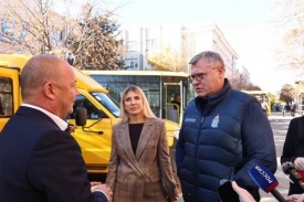 Губернатор Астраханской области Игорь Бабушкин накануне совместно с министром образования и науки региона Марией Шалак вручили ключи от 11 новых школьных автобусов представителям шести муниципальных районов.
