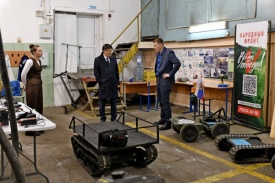 «Новую модель мы создали на базе наших ранних разработок, но в ней более дорогая электроника, и для большей проходимости она выполнена на гусеничном ходу. Сейчас продолжаем эксперименты с ходовой частью, нужно добиться устойчивого результата по перевозке 150 кг груза. Надеюсь, он успешно пройдет все испытания», - рассказал спикеру один из разработчиков аппарата Иван Бармин.